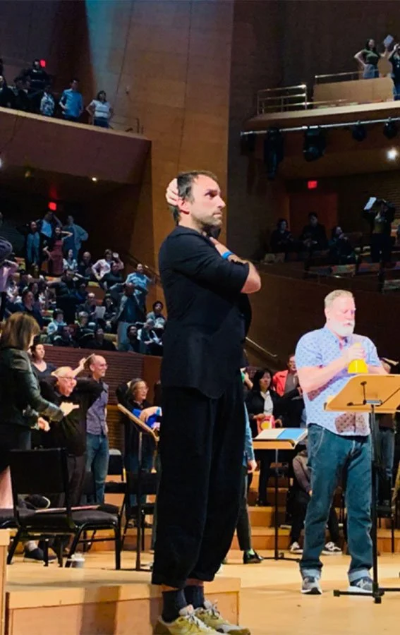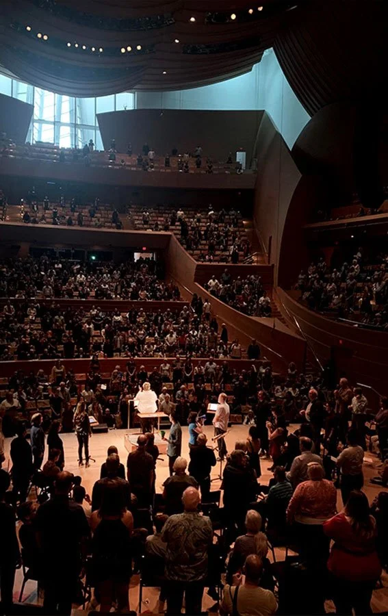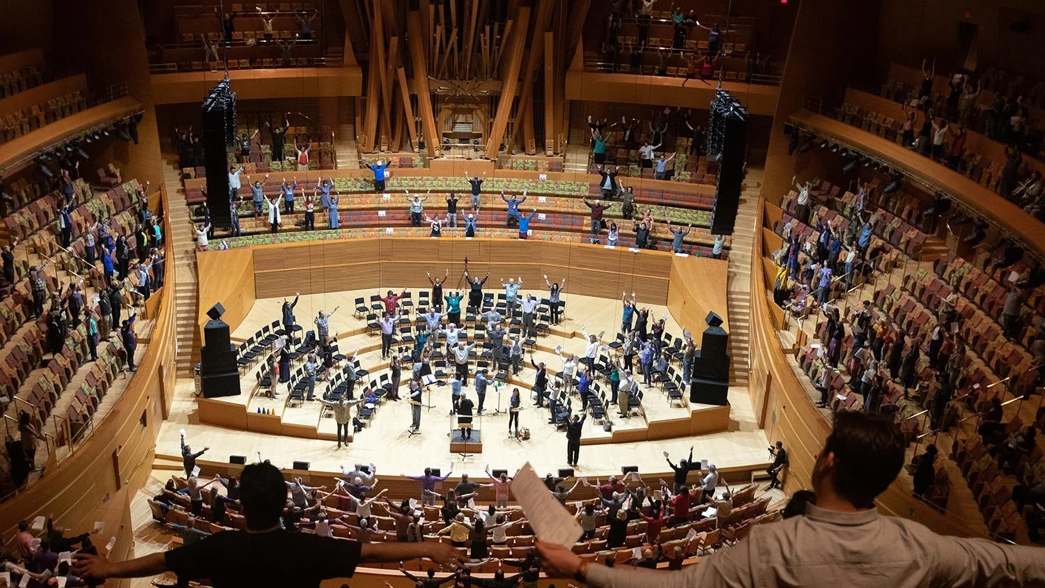 Conductor Lesley Leighton. Choreography Dimitri Chamblas. With the participation of Los Robles Master Chorale, CalArts Department of music, San Fernando Valley Master Chorale, The Ruby L.A, Painted Brain, Philippine Chamber Singers, San Gabriel Valley Choral Company, Community Chorus, Women’s, Victory Starts Now, Welsh Choir of Southern California, L.A. Chamber Choir, CSU San Bernardino Department of Music, Dead Practice / The Mortuary, Pasadena Pro Musica, Children’s Media Association of Los Angeles, UCI Chamber Singers, Apollo Men’s Choir, Antelope Valley Master Chorale, Keali’i O Nalani, and Covina United Methodist.