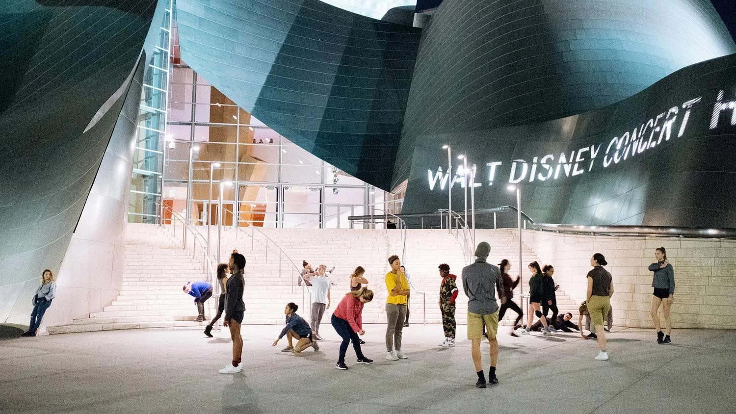 Dec. 15 and 16 2017 at 8 pm, 70 dancers from the California Institute of the Arts (CalArts) presented this massive ensemble performance on the steps and sidewalk surrounding the Walt Disney Concert Hall in Downtown Los Angeles. Hhumann demonstrates how movement can bring urban, public spaces to life and features the entire student body of CalArts Dance.