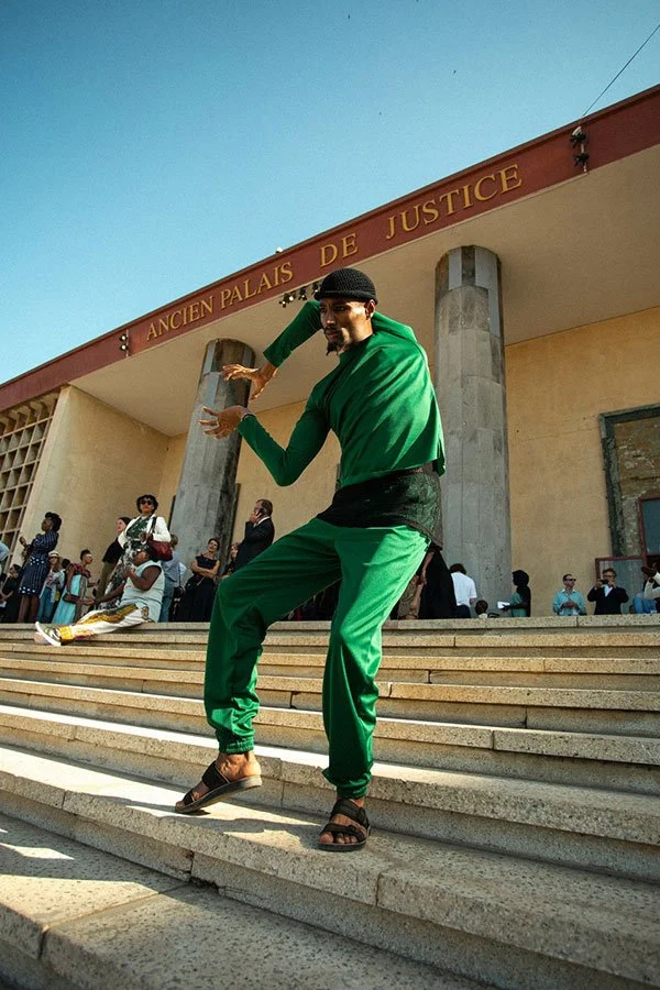 In collaboration with African dance icon Germaine Acogny and performed by dancers from her school, École des Sables, Slow Show made its return to the African continent in the vibrant city of Dakar. Taking place in the former Palais de Justice of the senegalese capital, participants took on the esplanade of this historic building for this edition of the performance on December 6th, 2022.